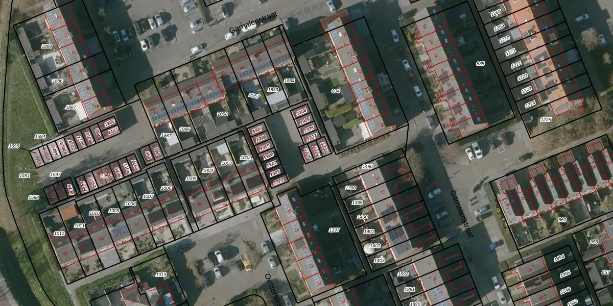 Gebruik de zoekbalk of klik op een perceel voor informatie over de adressen binnen dit perceel.