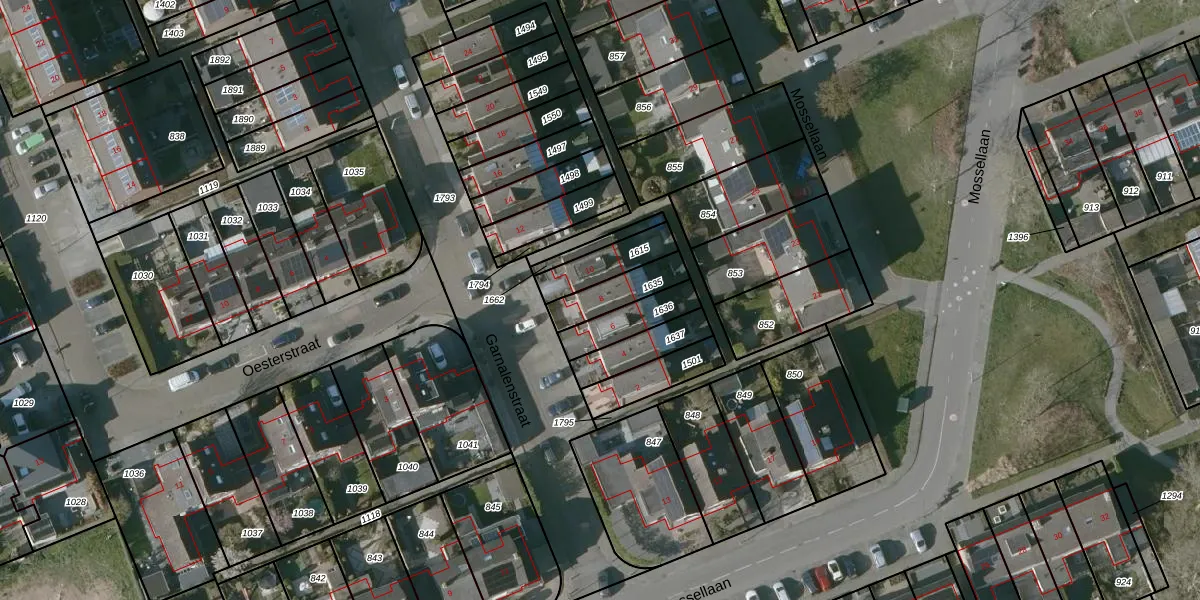 Gebruik de zoekbalk of klik op een perceel voor informatie over de adressen binnen dit perceel.