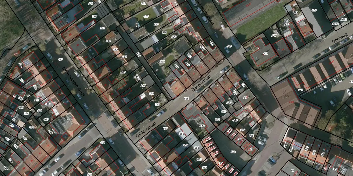 Het perceel waarop Gildenstraat 12 staat heeft een oppervlakte van 397 m². Dit is een groot perceel. De perceeloppervlakte wordt geregistreerd door het Kadaster. Gedetailleerde informatie over de maten van dit perceel kunt u vinden in het rapport Kadastrale kaart met maatvoering van Gildenstraat 12.
