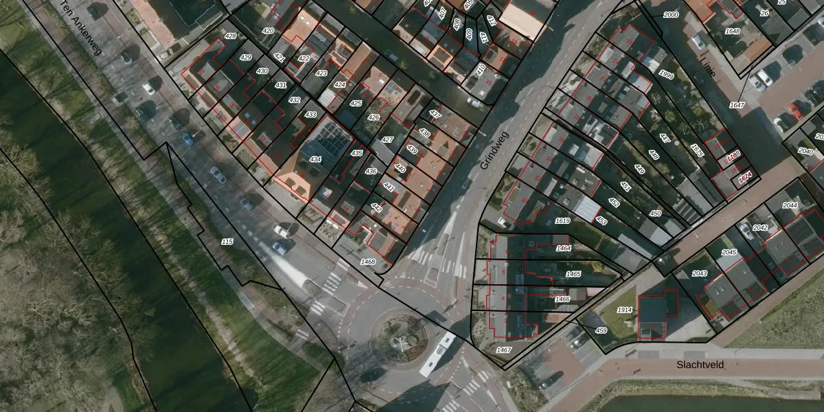 Gebruik de zoekbalk of klik op een perceel voor informatie over de adressen binnen dit perceel.