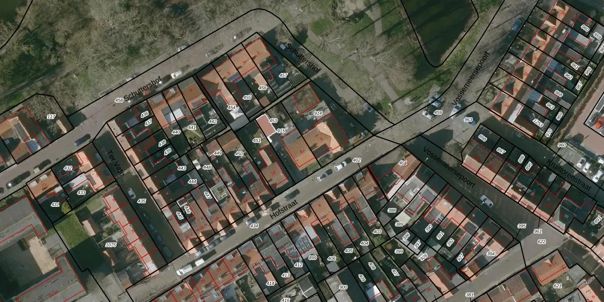 Gebruik de zoekbalk of klik op een perceel voor informatie over de adressen binnen dit perceel.