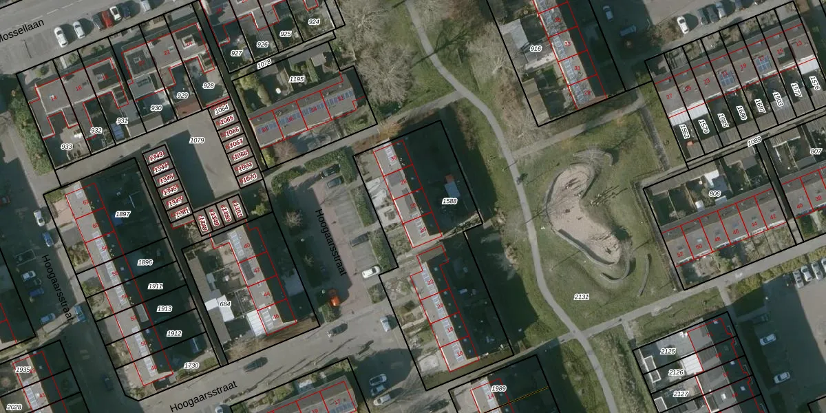 Het perceel waarop Hoogaarsstraat 26 staat heeft een oppervlakte van 1351 m². Dit is een zeer groot perceel. De perceeloppervlakte wordt geregistreerd door het Kadaster. Gedetailleerde informatie over de maten van dit perceel kunt u vinden in het rapport Kadastrale kaart met maatvoering van Hoogaarsstraat 26.