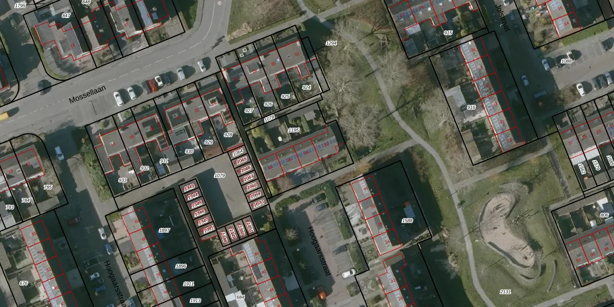 Het perceel waarop Hoogaarsstraat 34 staat heeft een oppervlakte van 634 m². Dit is een groot perceel. De perceeloppervlakte wordt geregistreerd door het Kadaster. Gedetailleerde informatie over de maten van dit perceel kunt u vinden in het rapport Kadastrale kaart met maatvoering van Hoogaarsstraat 34.
