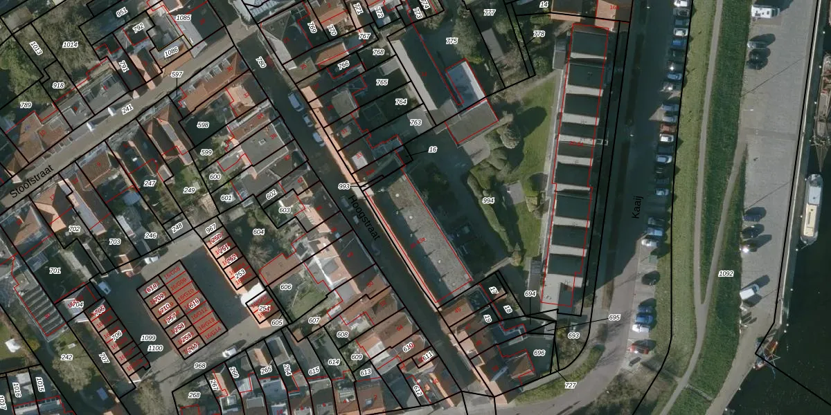 Het perceel waarop Hoogstraat 37-a staat heeft een oppervlakte van 2699 m². Dit is een zeer groot perceel. De perceeloppervlakte wordt geregistreerd door het Kadaster. Gedetailleerde informatie over de maten van dit perceel kunt u vinden in het rapport Kadastrale kaart met maatvoering van Hoogstraat 37-a.