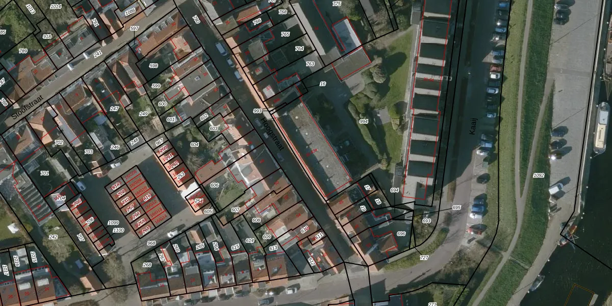 Het perceel waarop Hoogstraat 39 staat heeft een oppervlakte van 2699 m². Dit is een zeer groot perceel. De perceeloppervlakte wordt geregistreerd door het Kadaster. Gedetailleerde informatie over de maten van dit perceel kunt u vinden in het rapport Kadastrale kaart met maatvoering van Hoogstraat 39.