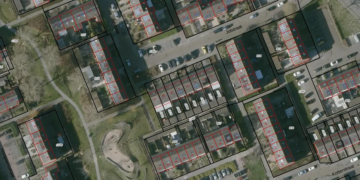 Gebruik de zoekbalk of klik op een perceel voor informatie over de adressen binnen dit perceel.