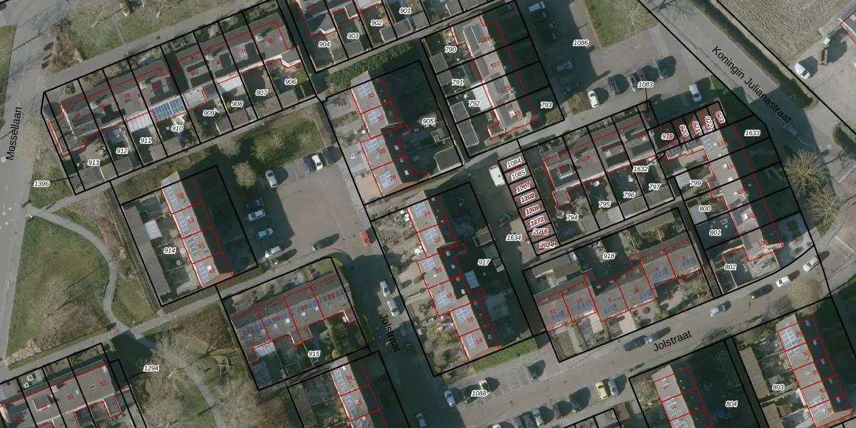 Het perceel waarop Jolstraat 24 staat heeft een oppervlakte van 978 m². Dit is een groot perceel. De perceeloppervlakte wordt geregistreerd door het Kadaster. Gedetailleerde informatie over de maten van dit perceel kunt u vinden in het rapport Kadastrale kaart met maatvoering van Jolstraat 24.