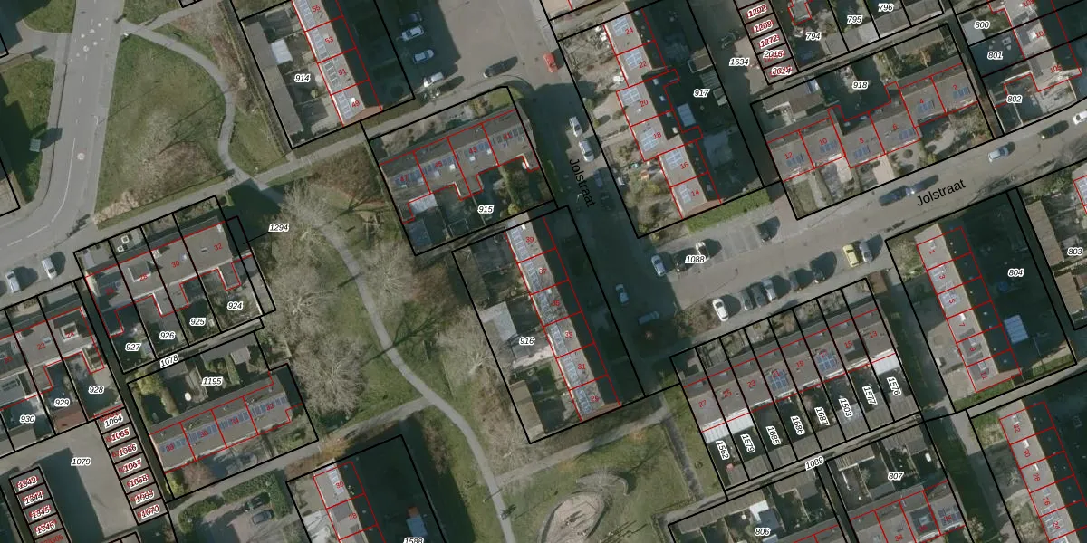 Het perceel waarop Jolstraat 37 staat heeft een oppervlakte van 873 m². Dit is een groot perceel. De perceeloppervlakte wordt geregistreerd door het Kadaster. Gedetailleerde informatie over de maten van dit perceel kunt u vinden in het rapport Kadastrale kaart met maatvoering van Jolstraat 37.