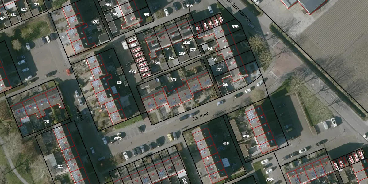 Het perceel waarop Jolstraat 6 staat heeft een oppervlakte van 898 m². Dit is een groot perceel. De perceeloppervlakte wordt geregistreerd door het Kadaster. Gedetailleerde informatie over de maten van dit perceel kunt u vinden in het rapport Kadastrale kaart met maatvoering van Jolstraat 6.