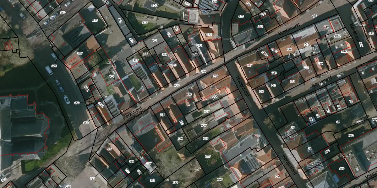 Kerkstraat 1 is gelegen op kadastraal perceel TLN00R732. Deze kadastrale aanduiding is uniek en wordt gebruikt door het Kadaster om eigendomsrechten en andere zakelijke rechten vast te leggen. Het perceel maakt onderdeel uit van de kadastrale gemeente Tholen.