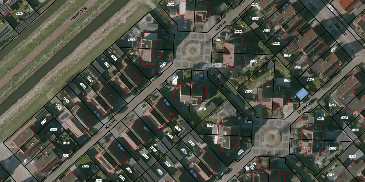 Gebruik de zoekbalk of klik op een perceel voor informatie over de adressen binnen dit perceel.