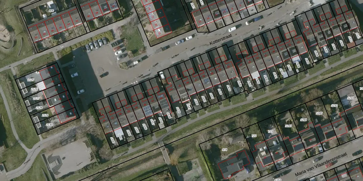 Kotterstraat 41 is gelegen op kadastraal perceel TLN00N1547. Deze kadastrale aanduiding is uniek en wordt gebruikt door het Kadaster om eigendomsrechten en andere zakelijke rechten vast te leggen. Het perceel maakt onderdeel uit van de kadastrale gemeente Tholen.