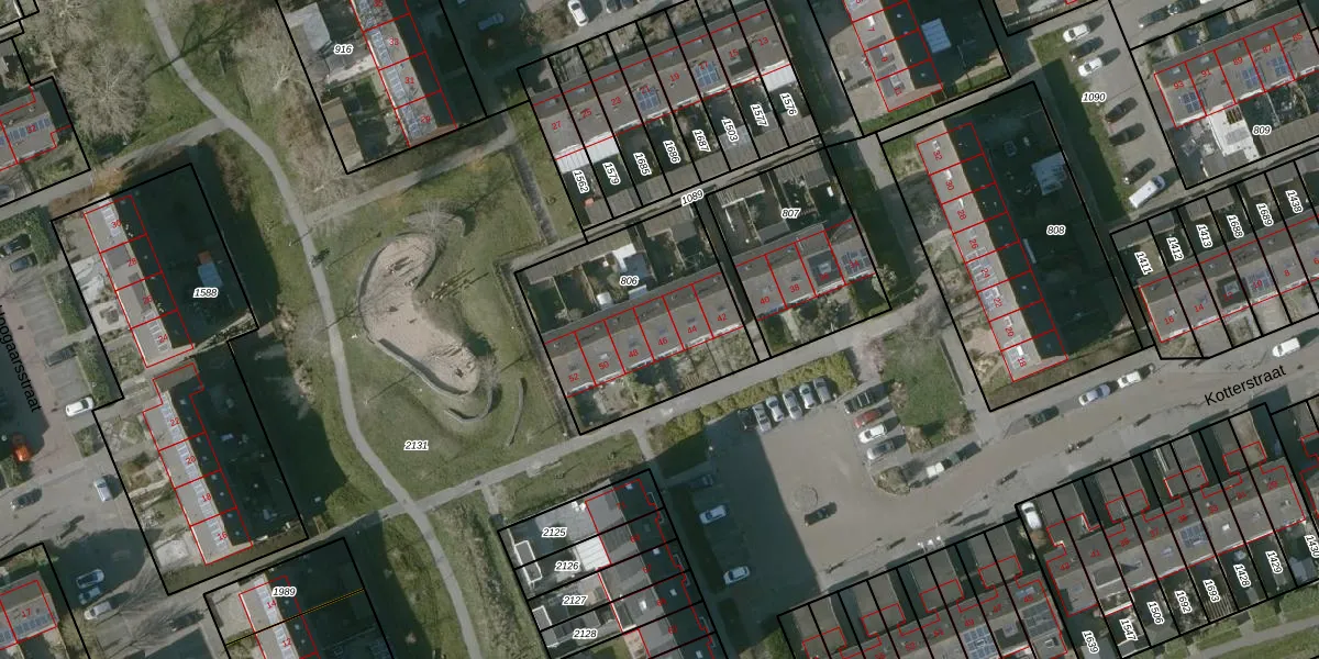 Het perceel waarop Kotterstraat 46 staat heeft een oppervlakte van 775 m². Dit is een groot perceel. De perceeloppervlakte wordt geregistreerd door het Kadaster. Gedetailleerde informatie over de maten van dit perceel kunt u vinden in het rapport Kadastrale kaart met maatvoering van Kotterstraat 46.