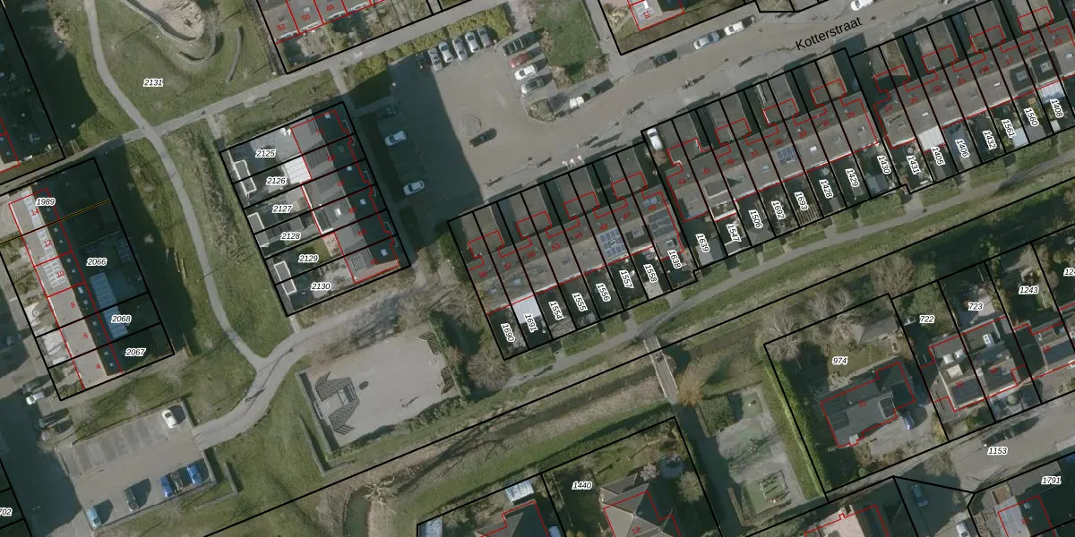 Het perceel waarop Kotterstraat 55 staat heeft een oppervlakte van 133 m². Dit is een middelgroot perceel. De perceeloppervlakte wordt geregistreerd door het Kadaster. Gedetailleerde informatie over de maten van dit perceel kunt u vinden in het rapport Kadastrale kaart met maatvoering van Kotterstraat 55.