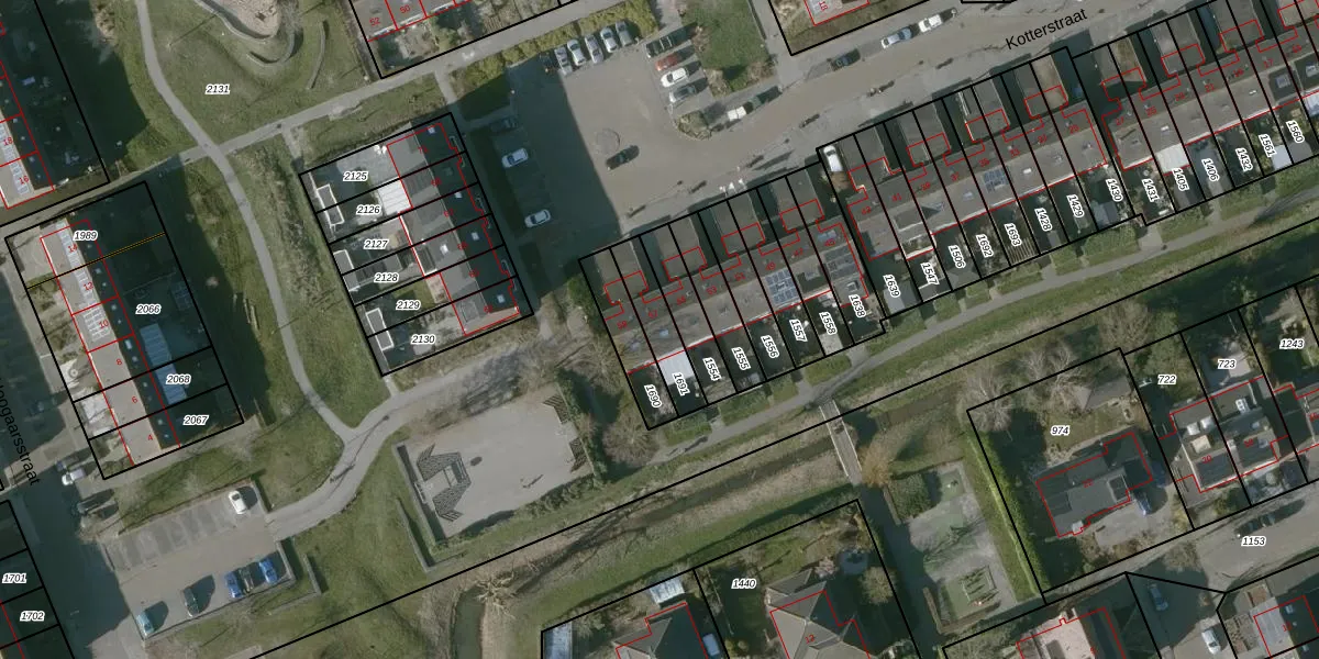 Het perceel waarop Kotterstraat 57 staat heeft een oppervlakte van 134 m². Dit is een middelgroot perceel. De perceeloppervlakte wordt geregistreerd door het Kadaster. Gedetailleerde informatie over de maten van dit perceel kunt u vinden in het rapport Kadastrale kaart met maatvoering van Kotterstraat 57.