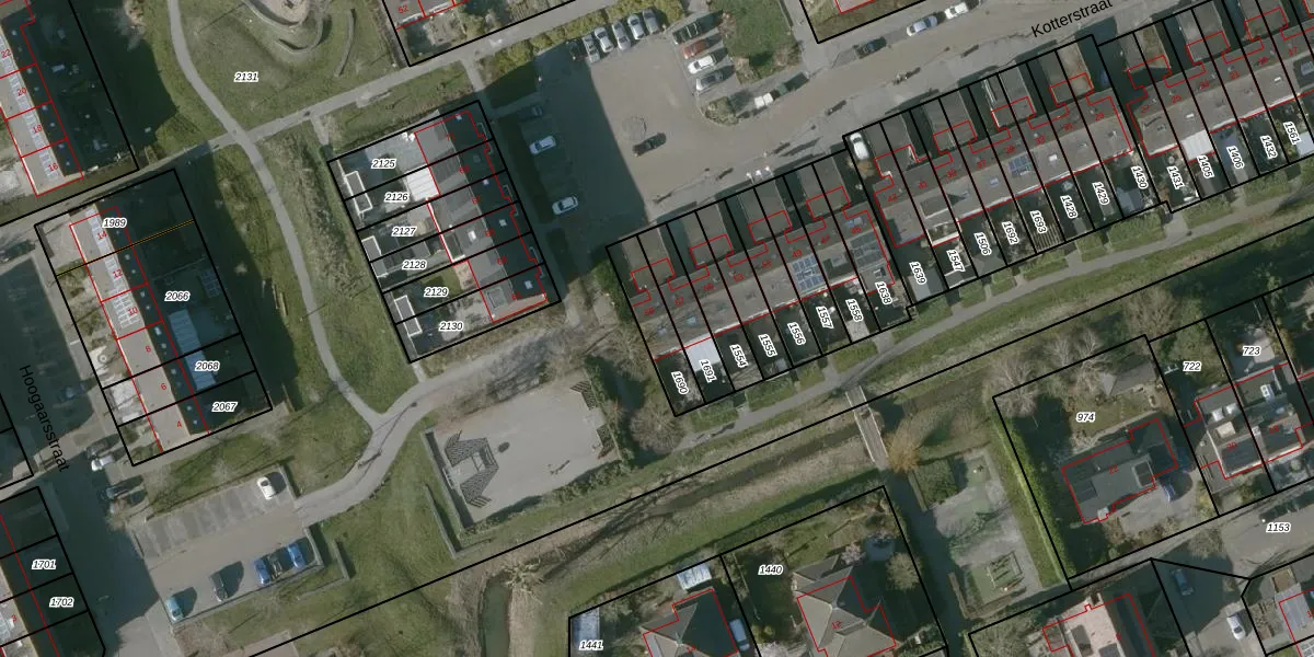Het perceel waarop Kotterstraat 59 staat heeft een oppervlakte van 140 m². Dit is een middelgroot perceel. De perceeloppervlakte wordt geregistreerd door het Kadaster. Gedetailleerde informatie over de maten van dit perceel kunt u vinden in het rapport Kadastrale kaart met maatvoering van Kotterstraat 59.