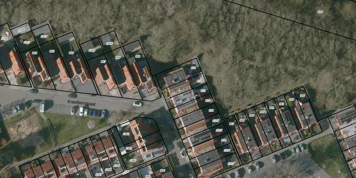 Gebruik de zoekbalk of klik op een perceel voor informatie over de adressen binnen dit perceel.