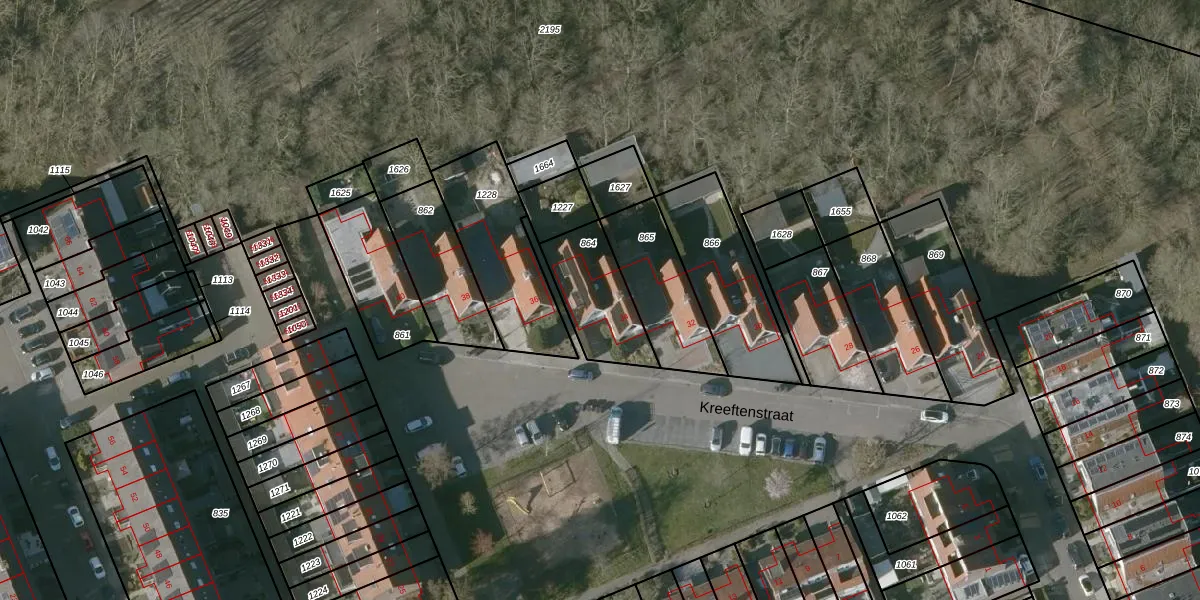 Gebruik de zoekbalk of klik op een perceel voor informatie over de adressen binnen dit perceel.