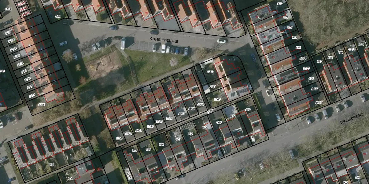 Gebruik de zoekbalk of klik op een perceel voor informatie over de adressen binnen dit perceel.