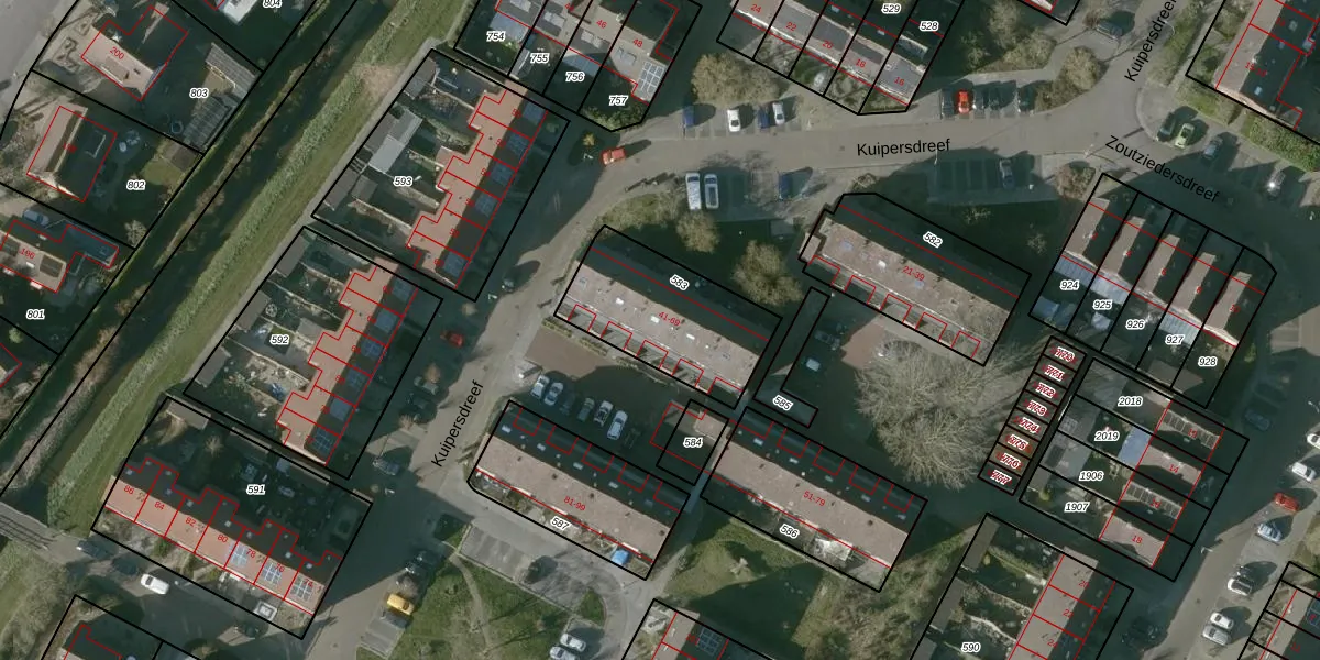 Kuipersdreef 65 is gelegen op kadastraal perceel TLN00O583. Deze kadastrale aanduiding is uniek en wordt gebruikt door het Kadaster om eigendomsrechten en andere zakelijke rechten vast te leggen. Het perceel maakt onderdeel uit van de kadastrale gemeente Tholen.