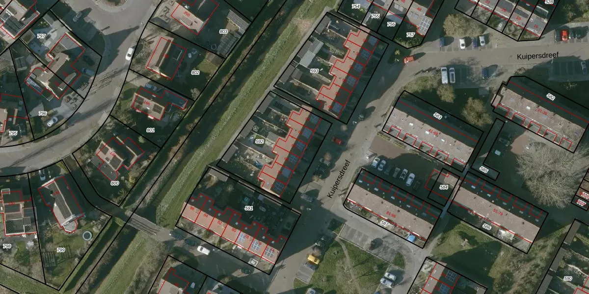 Kuipersdreef 66 is gelegen op kadastraal perceel TLN00O592. Deze kadastrale aanduiding is uniek en wordt gebruikt door het Kadaster om eigendomsrechten en andere zakelijke rechten vast te leggen. Het perceel maakt onderdeel uit van de kadastrale gemeente Tholen.