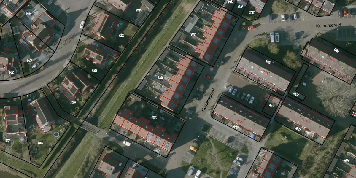 Kuipersdreef 68 is gelegen op kadastraal perceel TLN00O592. Deze kadastrale aanduiding is uniek en wordt gebruikt door het Kadaster om eigendomsrechten en andere zakelijke rechten vast te leggen. Het perceel maakt onderdeel uit van de kadastrale gemeente Tholen.
