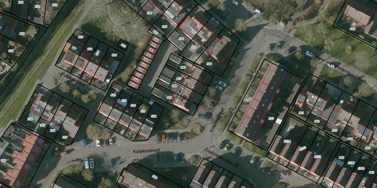 Gebruik de zoekbalk of klik op een perceel voor informatie over de adressen binnen dit perceel.