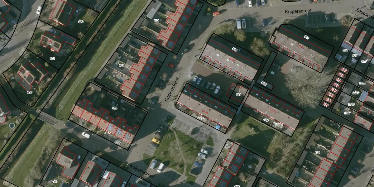 Kuipersdreef 89 is gelegen op kadastraal perceel TLN00O587. Deze kadastrale aanduiding is uniek en wordt gebruikt door het Kadaster om eigendomsrechten en andere zakelijke rechten vast te leggen. Het perceel maakt onderdeel uit van de kadastrale gemeente Tholen.