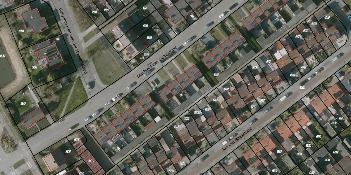 Het perceel waarop Machteld van Gelrestraat 65 staat heeft een oppervlakte van 4280 m². Dit is een zeer groot perceel. De perceeloppervlakte wordt geregistreerd door het Kadaster. Gedetailleerde informatie over de maten van dit perceel kunt u vinden in het rapport Kadastrale kaart met maatvoering van Machteld van Gelrestraat 65.