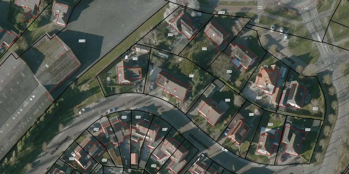 Gebruik de zoekbalk of klik op een perceel voor informatie over de adressen binnen dit perceel.