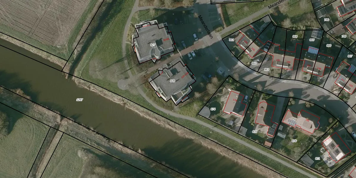 Het perceel waarop Meanderlaan 126 staat heeft een oppervlakte van 380 m². Dit is een groot perceel. De perceeloppervlakte wordt geregistreerd door het Kadaster. Gedetailleerde informatie over de maten van dit perceel kunt u vinden in het rapport Kadastrale kaart met maatvoering van Meanderlaan 126.
