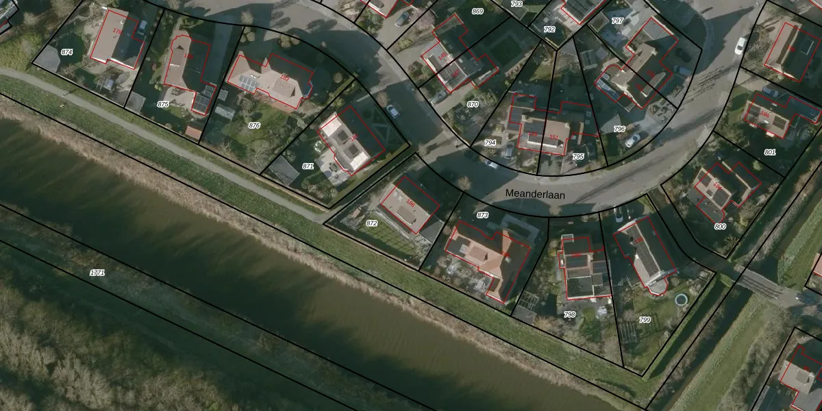 Gebruik de zoekbalk of klik op een perceel voor informatie over de adressen binnen dit perceel.