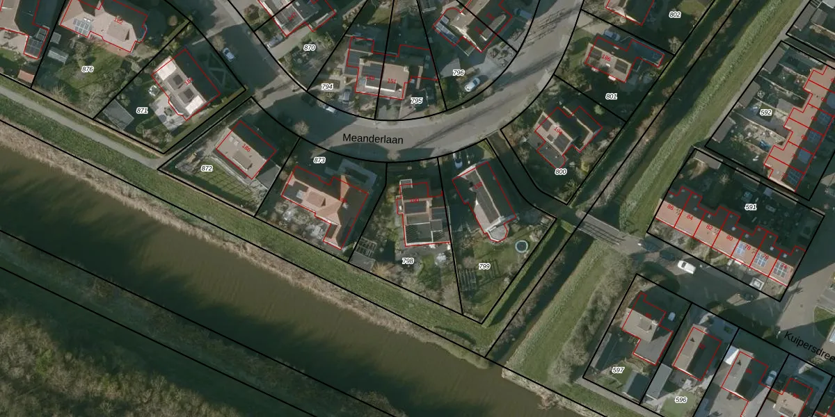 Gebruik de zoekbalk of klik op een perceel voor informatie over de adressen binnen dit perceel.