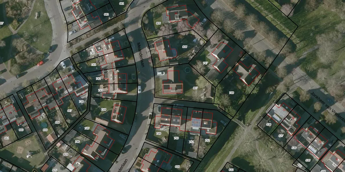 Het perceel waarop Meanderlaan 220 staat heeft een oppervlakte van 625 m². Dit is een groot perceel. De perceeloppervlakte wordt geregistreerd door het Kadaster. Gedetailleerde informatie over de maten van dit perceel kunt u vinden in het rapport Kadastrale kaart met maatvoering van Meanderlaan 220.