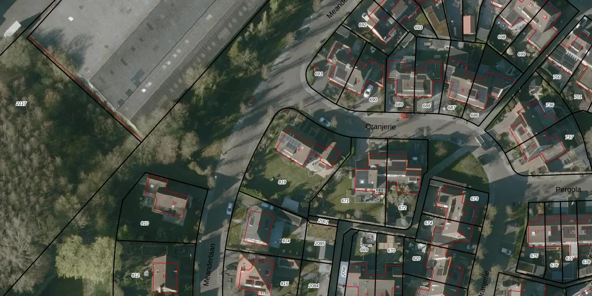 Gebruik de zoekbalk of klik op een perceel voor informatie over de adressen binnen dit perceel.