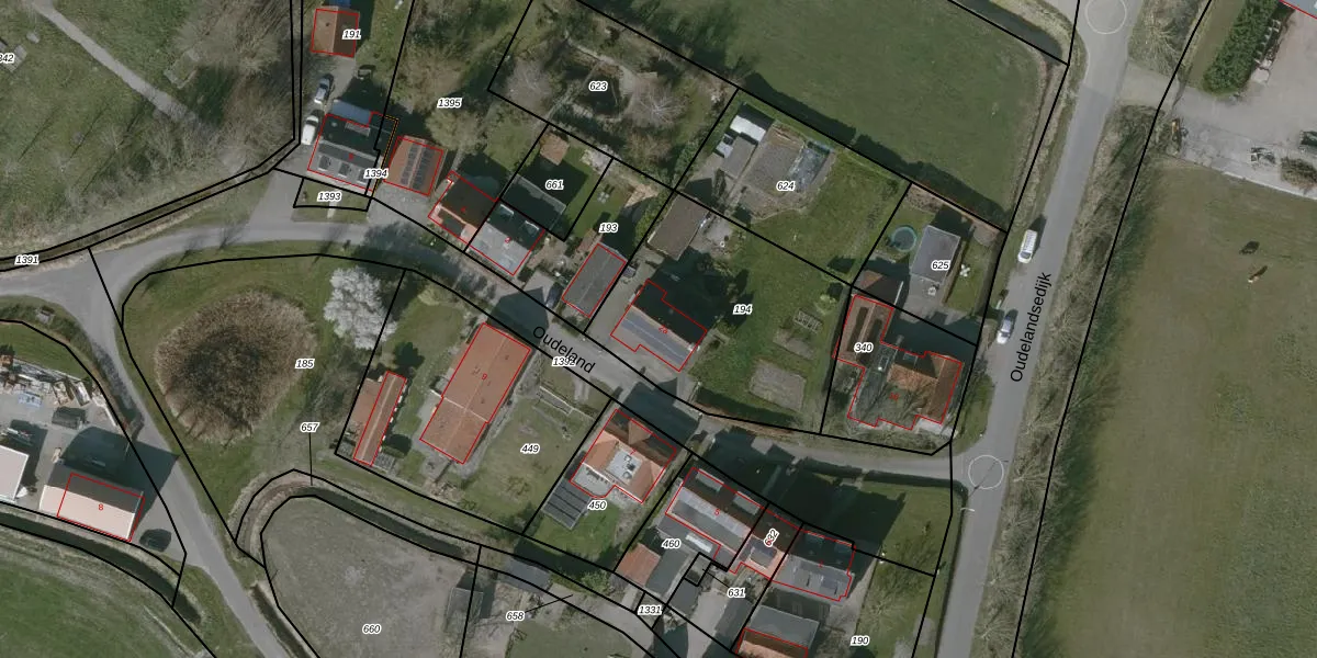 Het perceel waarop Oudeland 2-a staat heeft een oppervlakte van 900 m². Dit is een groot perceel. De perceeloppervlakte wordt geregistreerd door het Kadaster. Gedetailleerde informatie over de maten van dit perceel kunt u vinden in het rapport Kadastrale kaart met maatvoering van Oudeland 2-a.