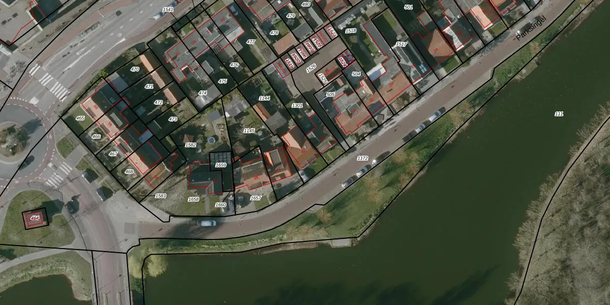 Het perceel waarop Parksingel 42 staat heeft een oppervlakte van 340 m². Dit is een groot perceel. De perceeloppervlakte wordt geregistreerd door het Kadaster. Gedetailleerde informatie over de maten van dit perceel kunt u vinden in het rapport Kadastrale kaart met maatvoering van Parksingel 42.