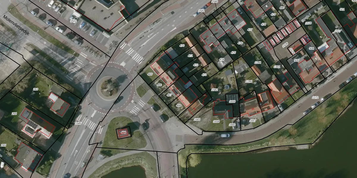 Gebruik de zoekbalk of klik op een perceel voor informatie over de adressen binnen dit perceel.