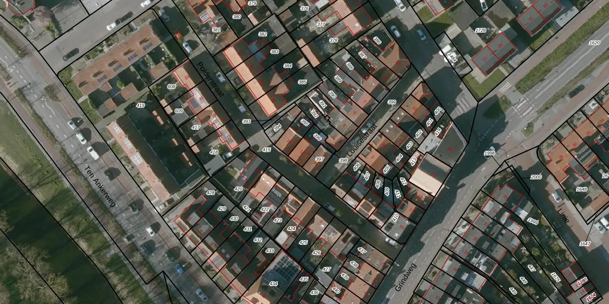 Gebruik de zoekbalk of klik op een perceel voor informatie over de adressen binnen dit perceel.