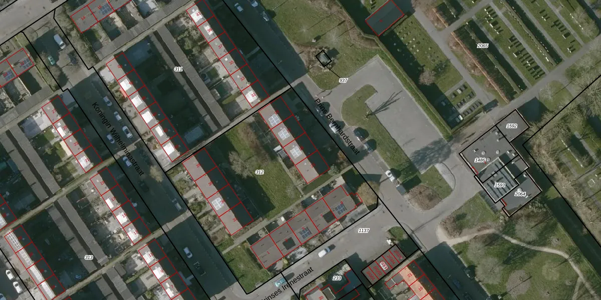 Het perceel waarop Prins Bernhardstraat 25 staat heeft een oppervlakte van 2585 m². Dit is een zeer groot perceel. De perceeloppervlakte wordt geregistreerd door het Kadaster. Gedetailleerde informatie over de maten van dit perceel kunt u vinden in het rapport Kadastrale kaart met maatvoering van Prins Bernhardstraat 25.