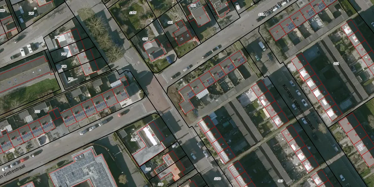 Het perceel waarop Prinses Beatrixstraat 2 staat heeft een oppervlakte van 5385 m². Dit is een zeer groot perceel. De perceeloppervlakte wordt geregistreerd door het Kadaster. Gedetailleerde informatie over de maten van dit perceel kunt u vinden in het rapport Kadastrale kaart met maatvoering van Prinses Beatrixstraat 2.
