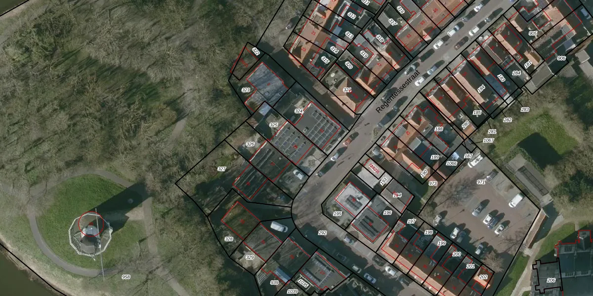 Gebruik de zoekbalk of klik op een perceel voor informatie over de adressen binnen dit perceel.