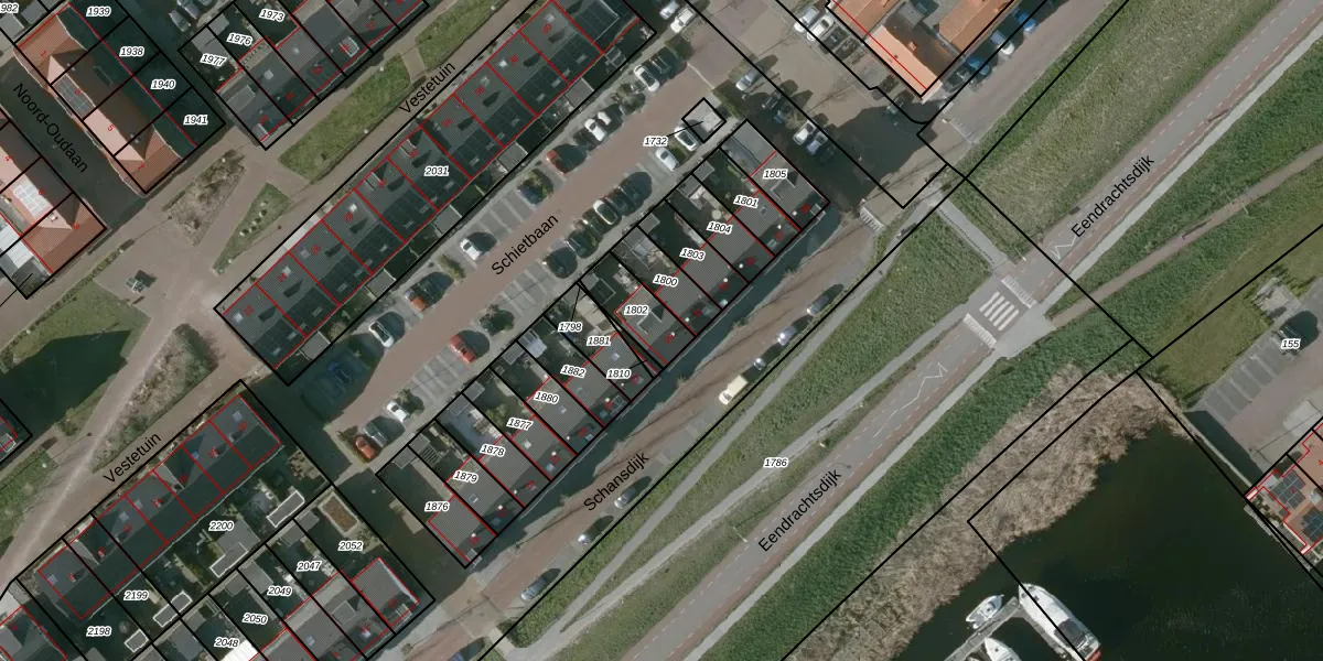 Gebruik de zoekbalk of klik op een perceel voor informatie over de adressen binnen dit perceel.