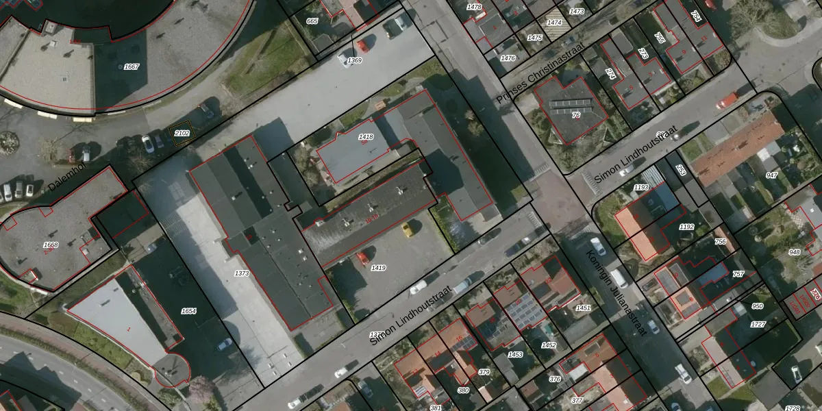 Het perceel waarop Simon Lindhoutstraat 1-e staat heeft een oppervlakte van 975 m². Dit is een groot perceel. De perceeloppervlakte wordt geregistreerd door het Kadaster. Gedetailleerde informatie over de maten van dit perceel kunt u vinden in het rapport Kadastrale kaart met maatvoering van Simon Lindhoutstraat 1-e.