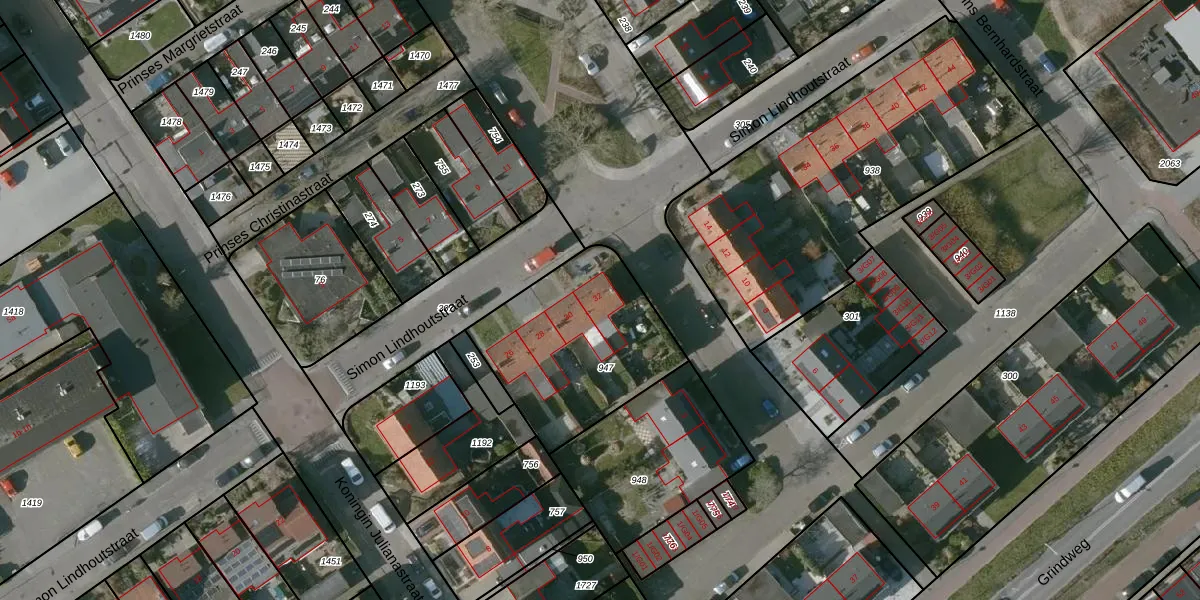 Simon Lindhoutstraat 32 is gelegen op kadastraal perceel TLN00N947. Deze kadastrale aanduiding is uniek en wordt gebruikt door het Kadaster om eigendomsrechten en andere zakelijke rechten vast te leggen. Het perceel maakt onderdeel uit van de kadastrale gemeente Tholen.