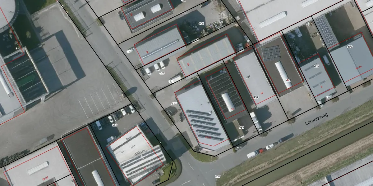 Het adres is gelegen op perceel 477 in de sectie S en de kadastrale gemeente Tholen. De kadastrale aanduiding is aldus TLN00-S-477. Het perceel is 997 m² groot. Dat is kleiner dan de gemiddelde perceeloppervlakte in Tholen, dat op 2,1 ha ligt. Het grootste perceel in de kadastrale gemeente is 32,13 km². Het kleinste perceel heeft een oppervlakte van 0 m². Op het perceel liggen in totaal 5 adressen. De huidige grenzen van het perceel zijn digitaal in de Basisregistratie Kadaster (BRK) geregistreerd op 06-08-2014.