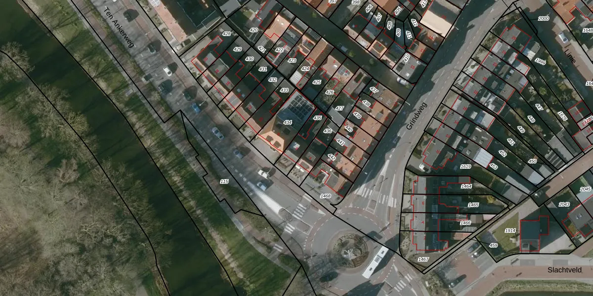 Gebruik de zoekbalk of klik op een perceel voor informatie over de adressen binnen dit perceel.