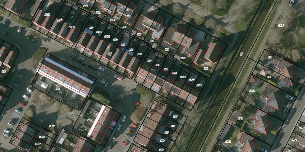Gebruik de zoekbalk of klik op een perceel voor informatie over de adressen binnen dit perceel.