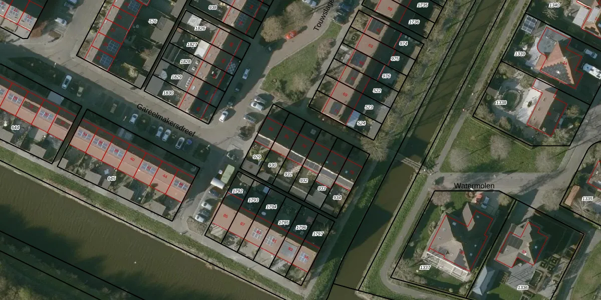 Gebruik de zoekbalk of klik op een perceel voor informatie over de adressen binnen dit perceel.