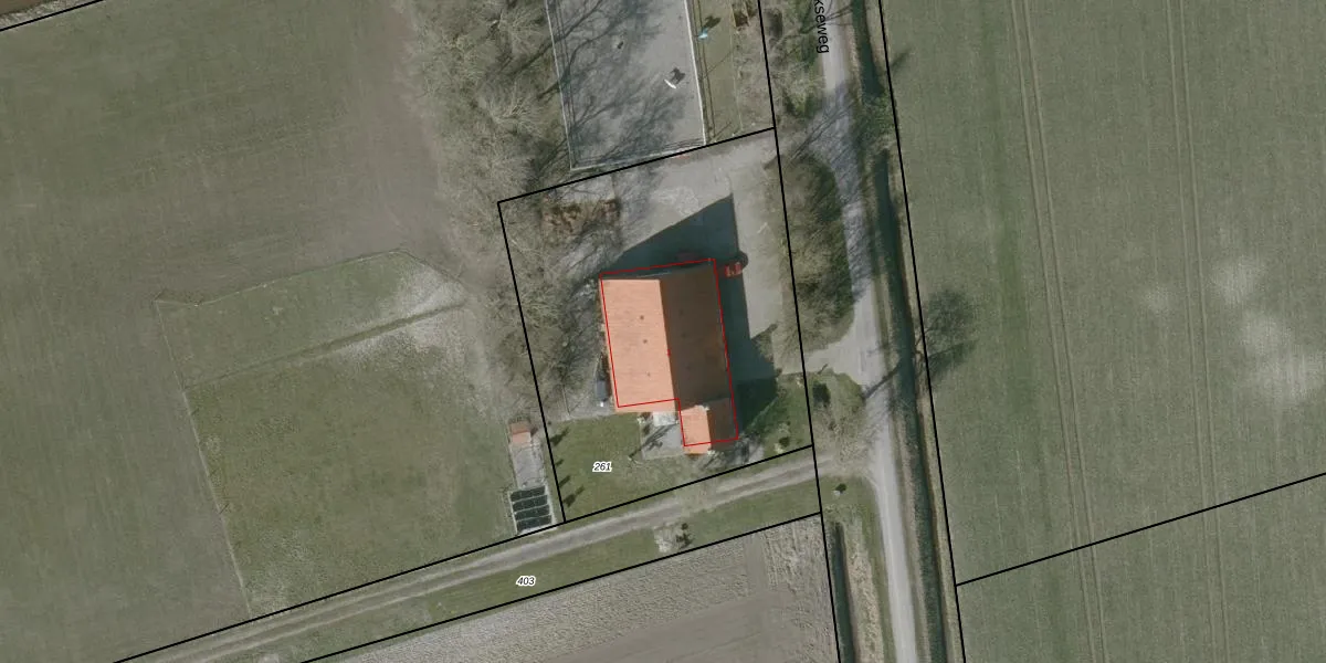 Het perceel waarop het adres ligt is TLN00-L-261. De afkorting 'TLN00' staat voor kadastrale gemeente Tholen. Het perceel is 1995 m² groot. Dat is kleiner dan de gemiddelde perceeloppervlakte in Tholen, dat op 2,1 ha ligt. Het grootste perceel in de kadastrale gemeente is 32,13 km². Het kleinste perceel heeft een oppervlakte van 0 m². Er zijn geen andere adressen aanwezig op het perceel. De huidige grenzen van het perceel zijn digitaal in de Basisregistratie Kadaster (BRK) geregistreerd op 19-03-2007.